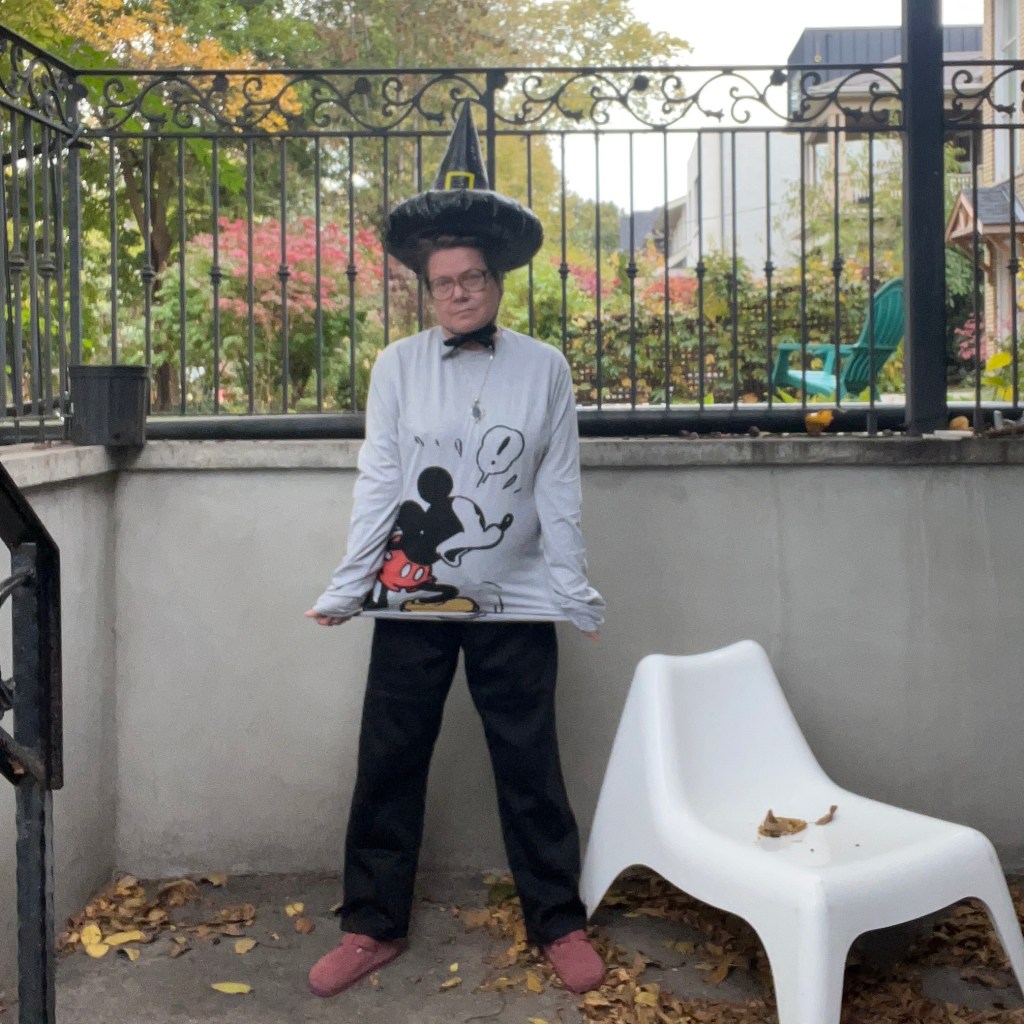 To celebrate staying focused and sticking to the list on yesterday’s shopping trip, I turned around and bought a wacky vinyl inflatable witch hat just in case I ever become a burlesque performer with a blowup latex look.