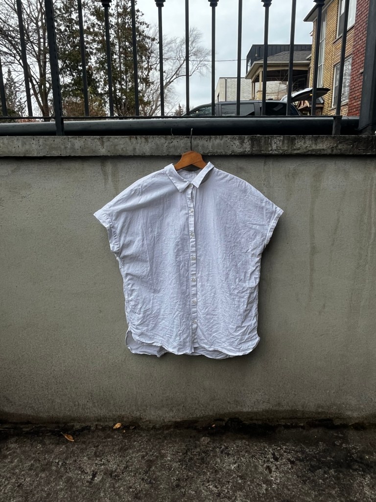 A nice, white linen short sleeved shirt because it may be wintery outside but I am hot all the time. And below is an October’s Very Own X Raptor’s long sleeve for layering. I’m gonna have to make this a two part post because I’m having technical difficulties.