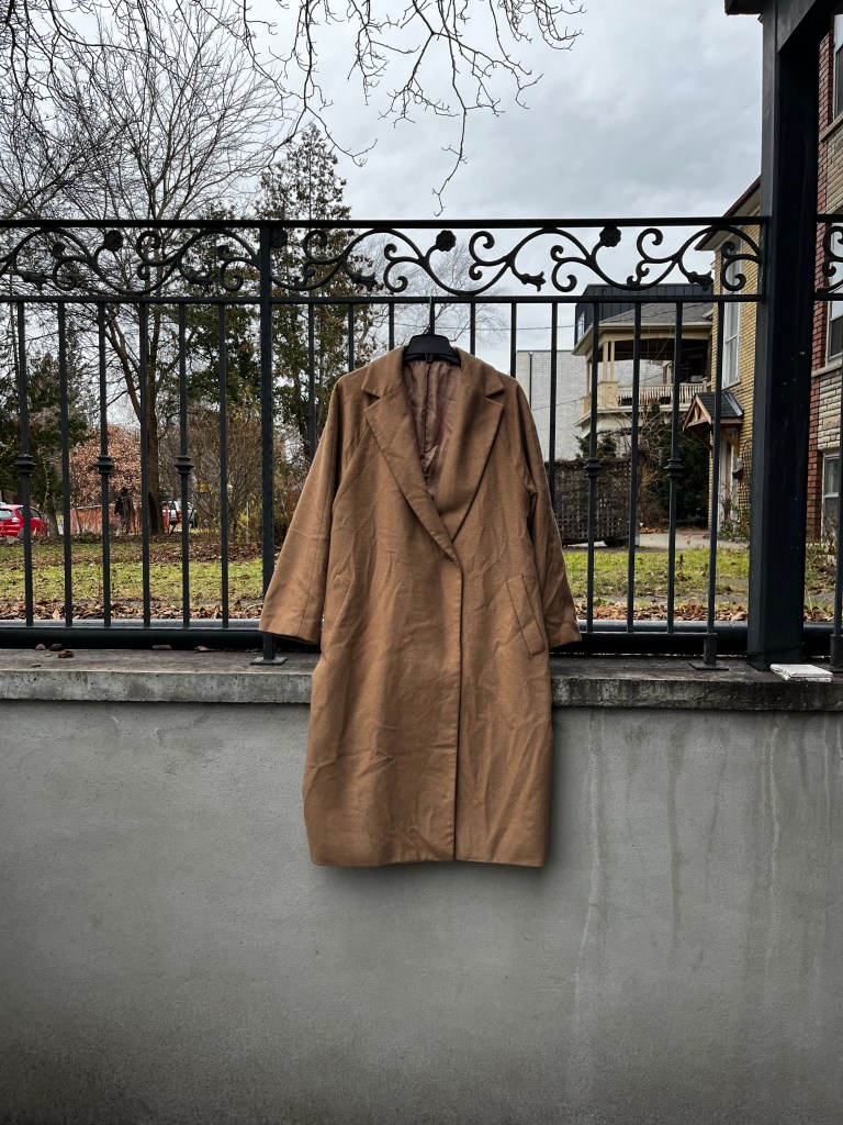 I tried to lay off buying new clothes in November. I wasn’t 100 percent successful but I was able to slow down my intake. I even got through the first week of December without adding to the closet. Without further ado, then, here’s an inventory of the garments that I got, starting with this thrifted Uniqlo camel coat (it’s replacing a beautiful top coat that the moths got at).