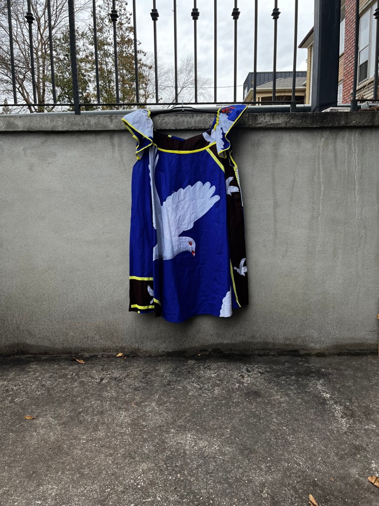 And I bought this handmade wax print dove dress because the dove is a symbol of peace, which is what we all want.