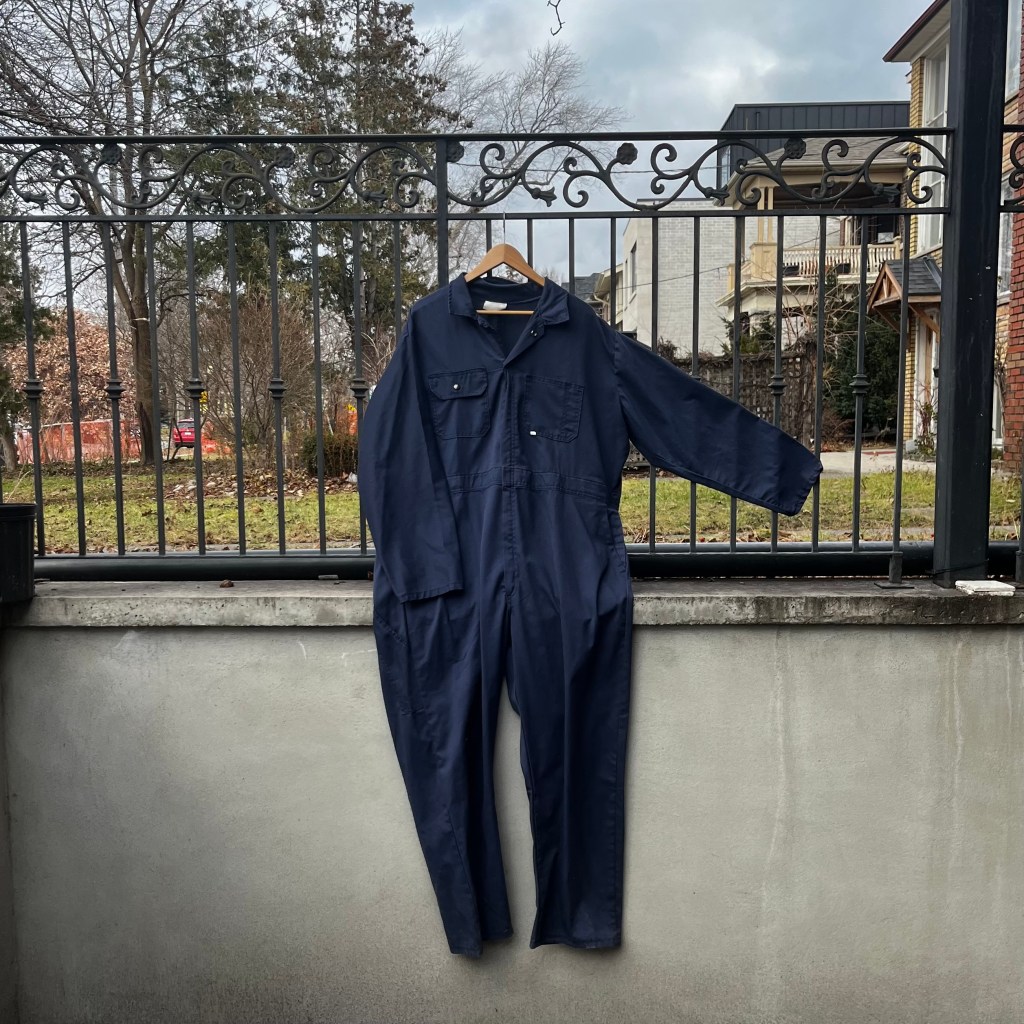 Here are some more garments I got last month. Some were thrift shop scores. This jumpsuit is maybe my favourite find. I sold off all of my other overalls when I found this pair because they are the perfect weight (my long sleeved jumpsuits were both very heavy denim) and fit (my short sleeved pair were a little high in the rise if you know what I mean).