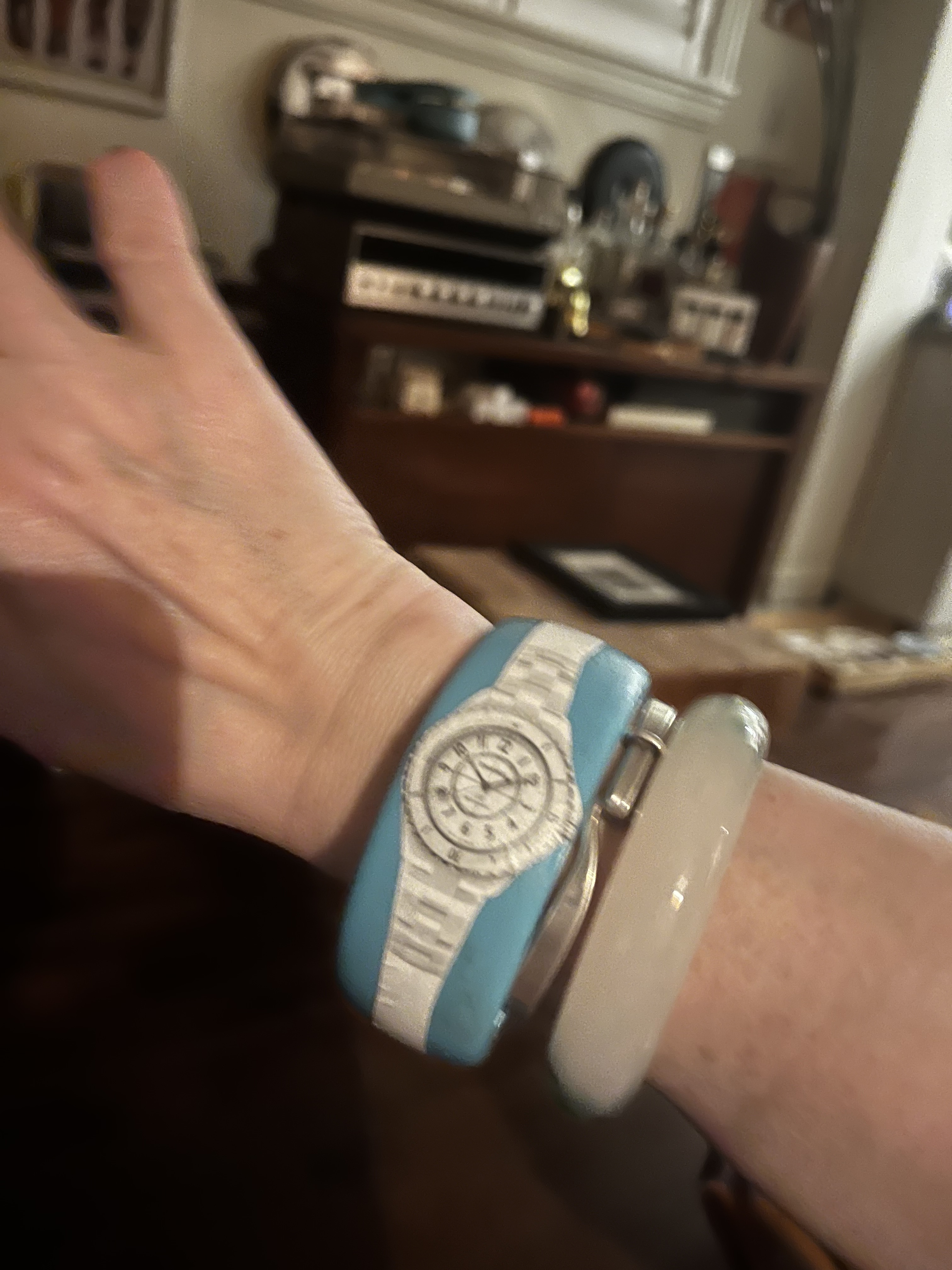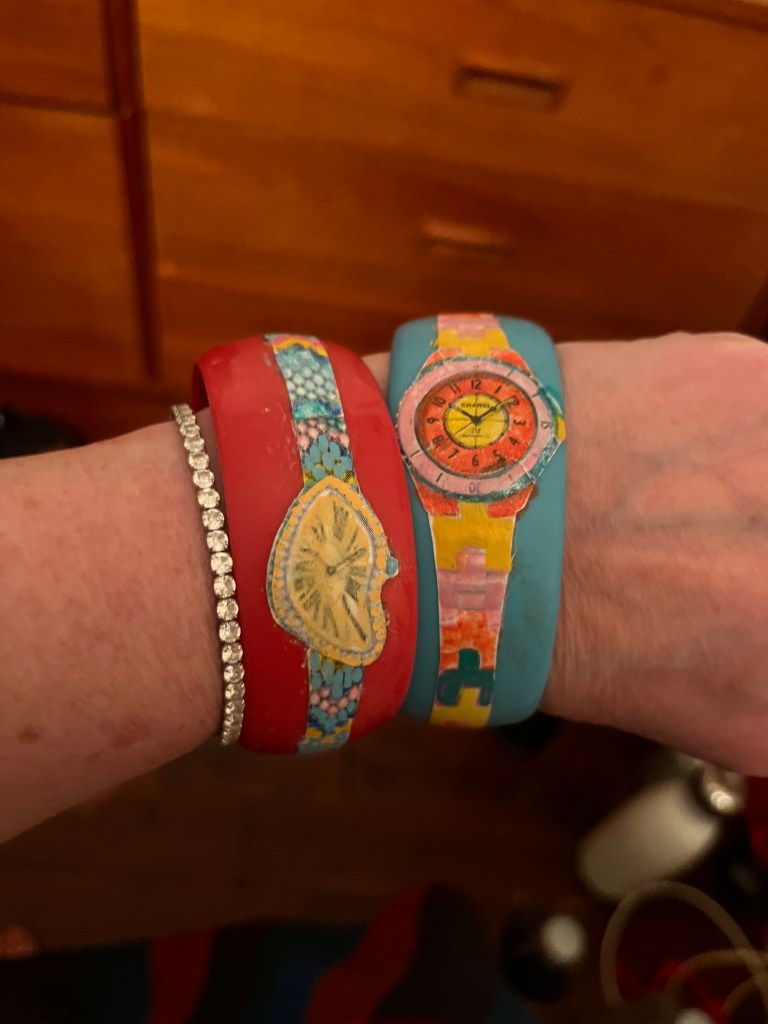Paris Fashion Week has just concluded which reminded me of some accessories from Chanel’s resort collection a couple of seasons ago. Basically the models were dressed up with bangles illustrated with classic chain bracelets and watches. I never saw these pieces on sale so I thought I’d try making my own.