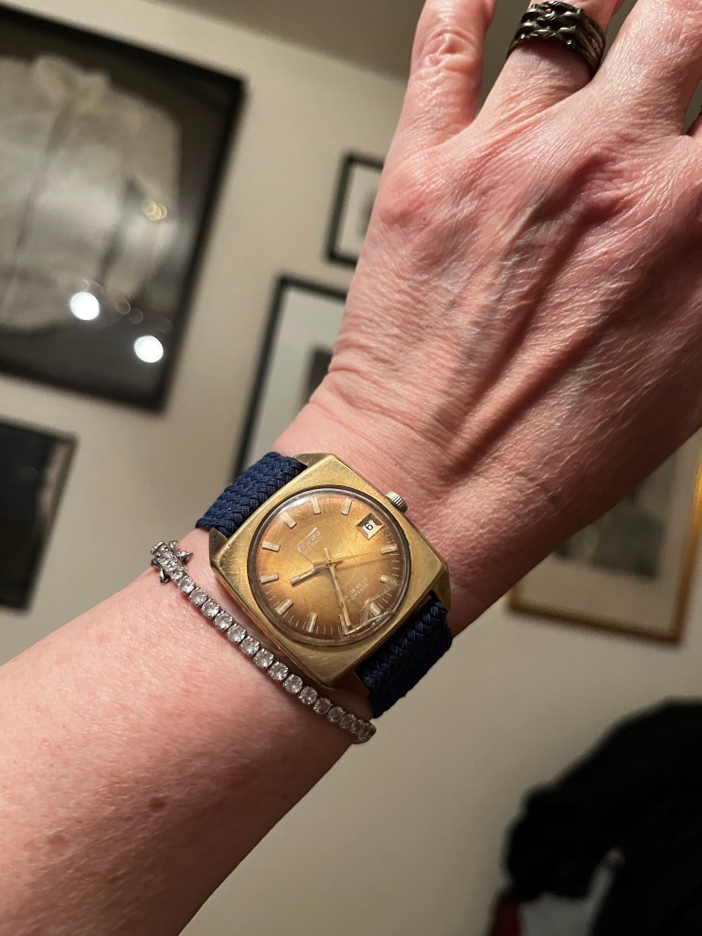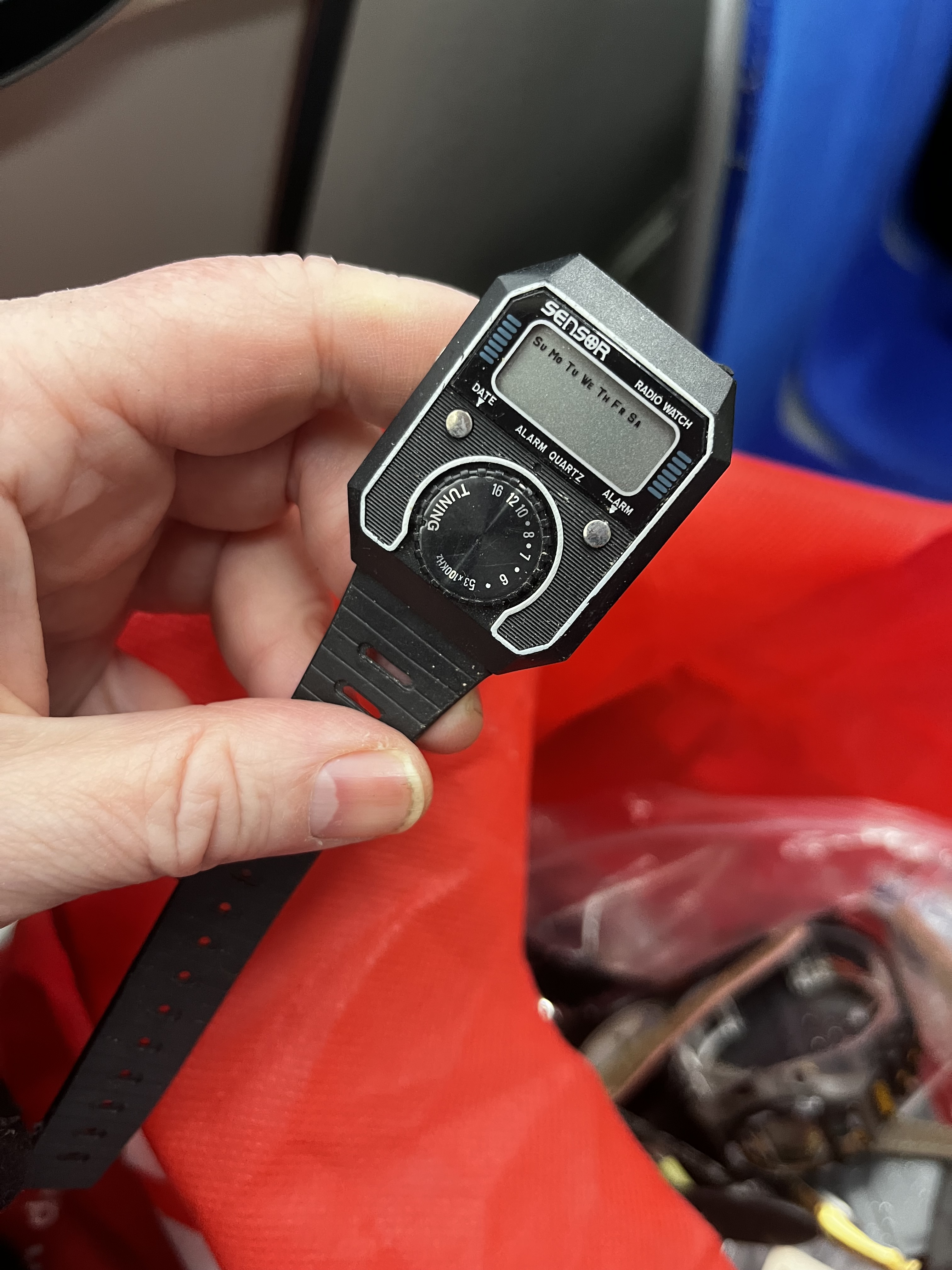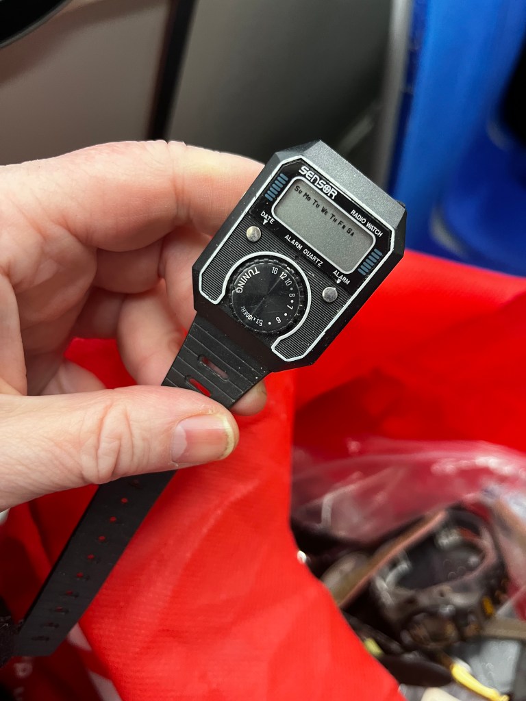 I bought a big bag of watches from Facebook Marketplace. I had a grand old time sorting through them, separating the interesting (to me) from the pedestrian, the working from the messed up. Here are some of my favourites, starting with the crazy wrist radio pictured above. I haven’t been able to get the battery cover off yet to test to see if it’s working.