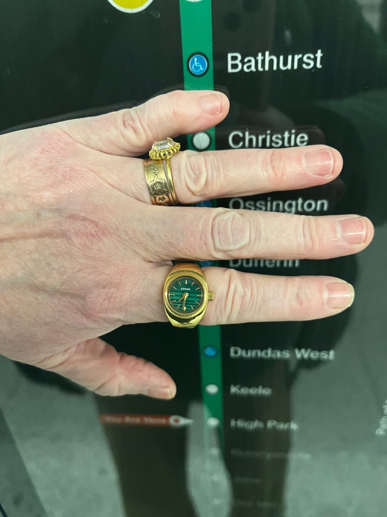 I was in New York last week for work. I was chatting with a colleague who had a malachite patterned manicure. I mentioned that Fossil had a ring watch that had a faux-malachite dial. I knew because I had been eyeing it for a while. But given the fact that I had just bought a Fossil ring watch last fall and I was saving up to get any number of other watches, it remained on my wish list.