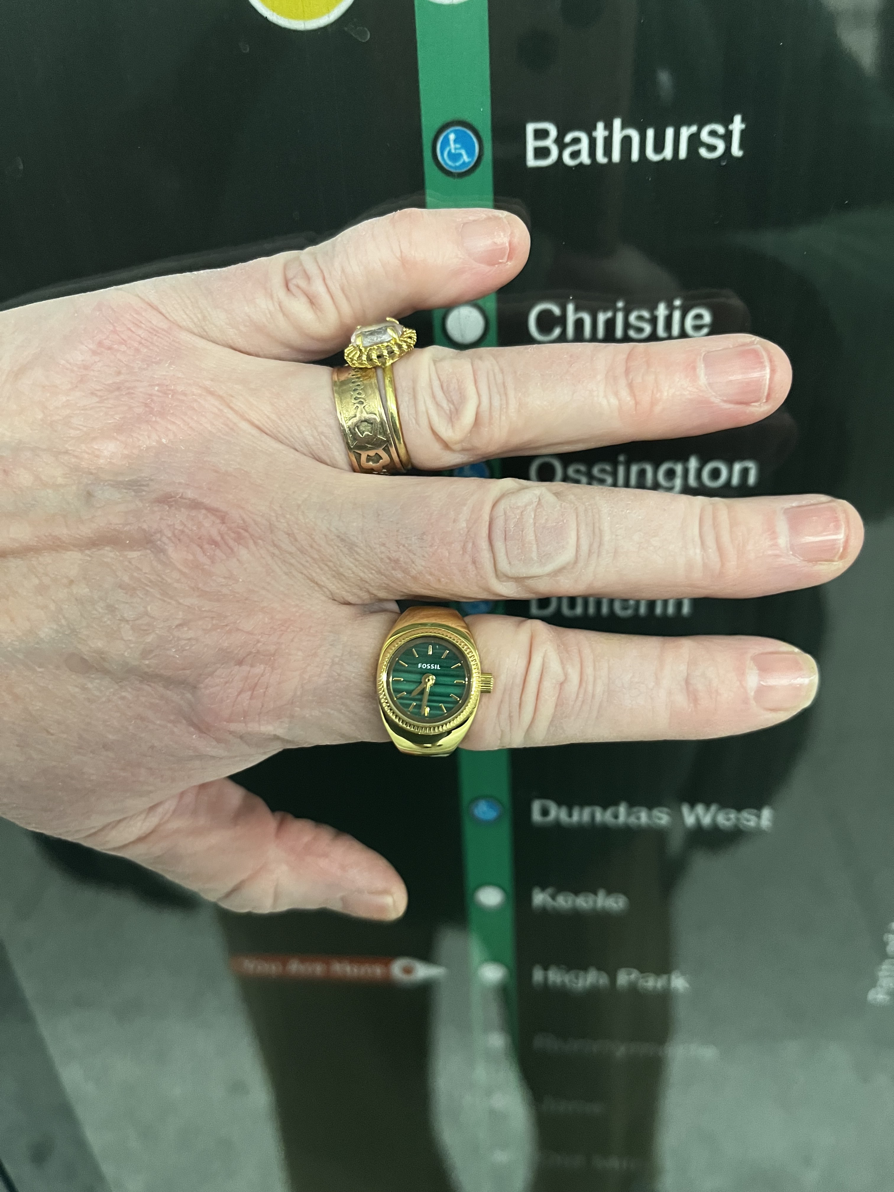 I was in New York last week for work. I was chatting with a colleague who had a malachite patterned manicure. I mentioned that Fossil had a ring watch that had a faux-malachite dial. I knew because I had been eyeing it for a while. But given the fact that I had just bought a Fossil ring watch last fall and I was saving up to get any number of other watches, it remained on my wish list.