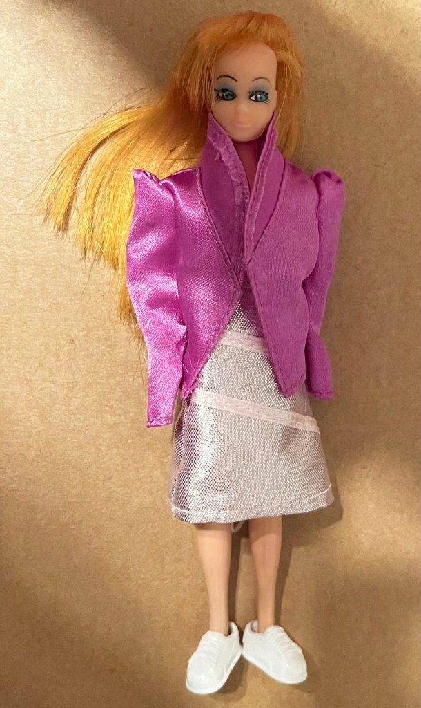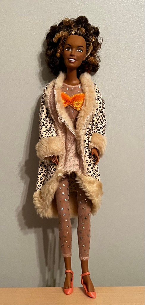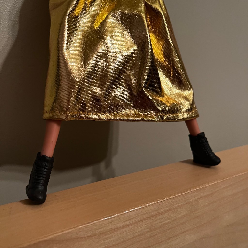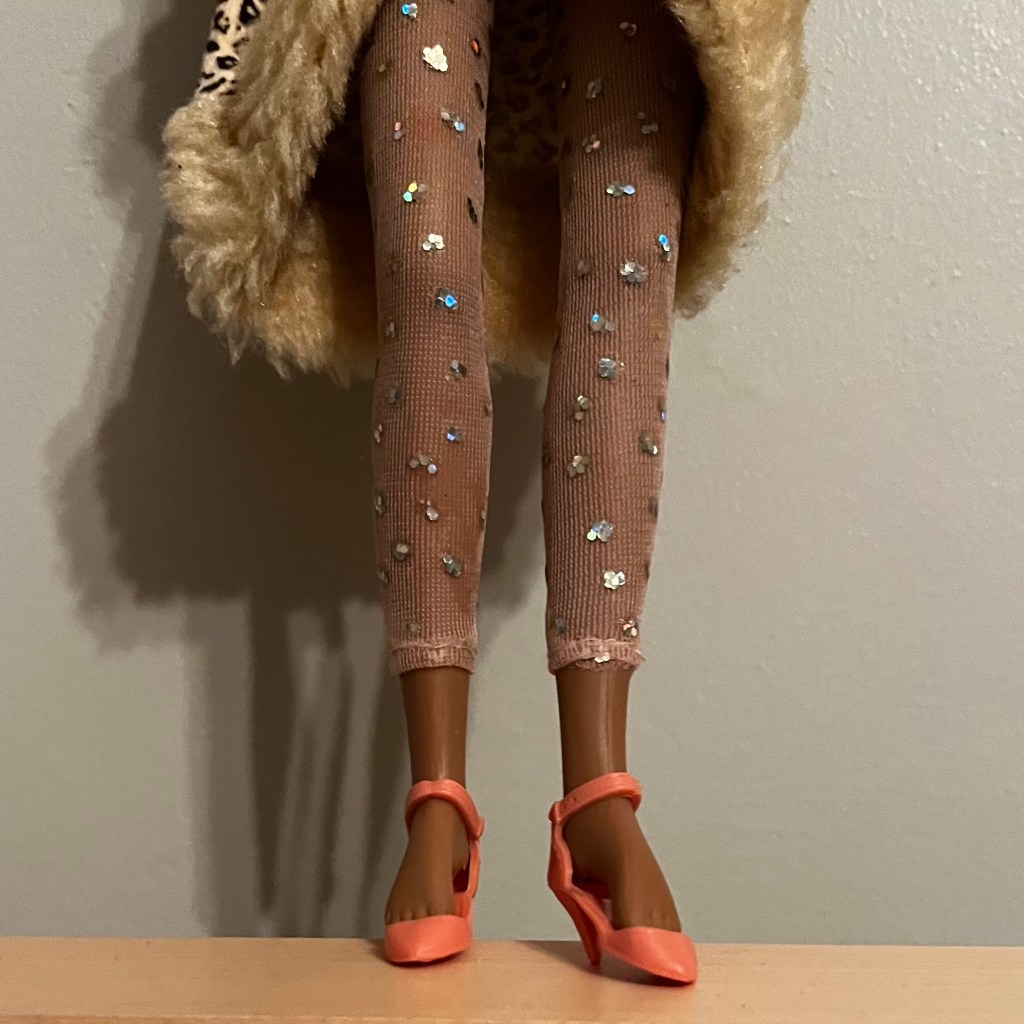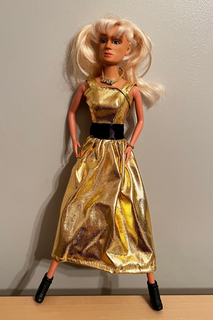 I also visited the Dollar Tree near my doctor’s office in Etobicoke where I found this lovely lurex dress and a set of Barbie shoes (complete with shoe rack) for Baby Spice #2 (AKA Scary Baby).