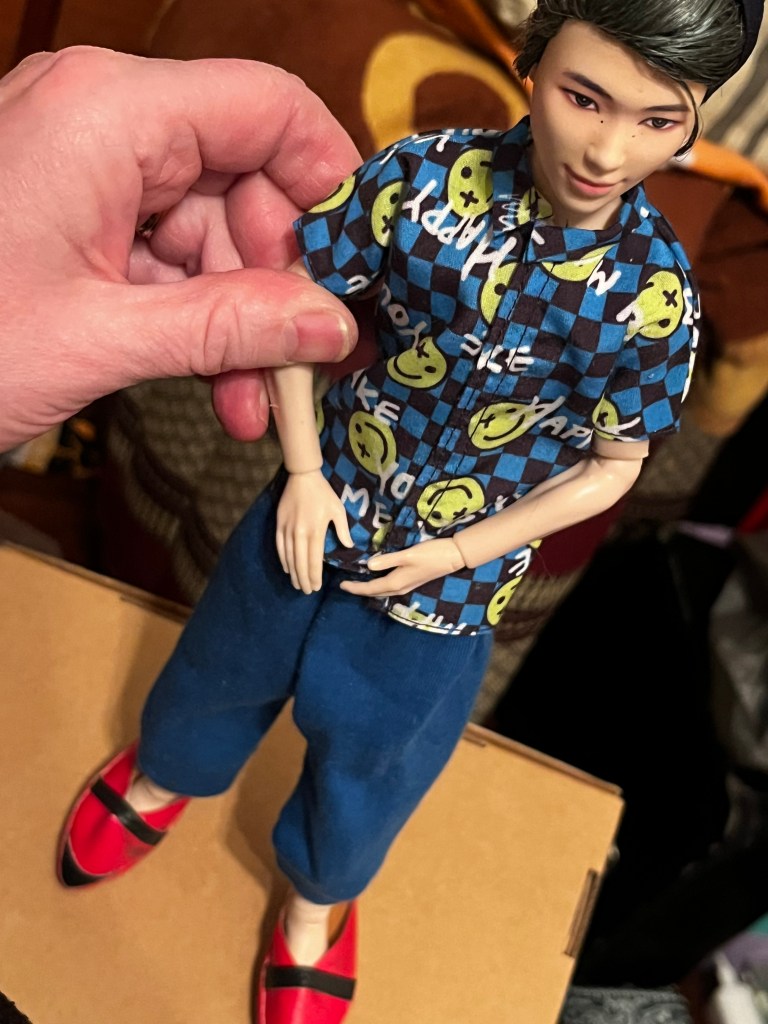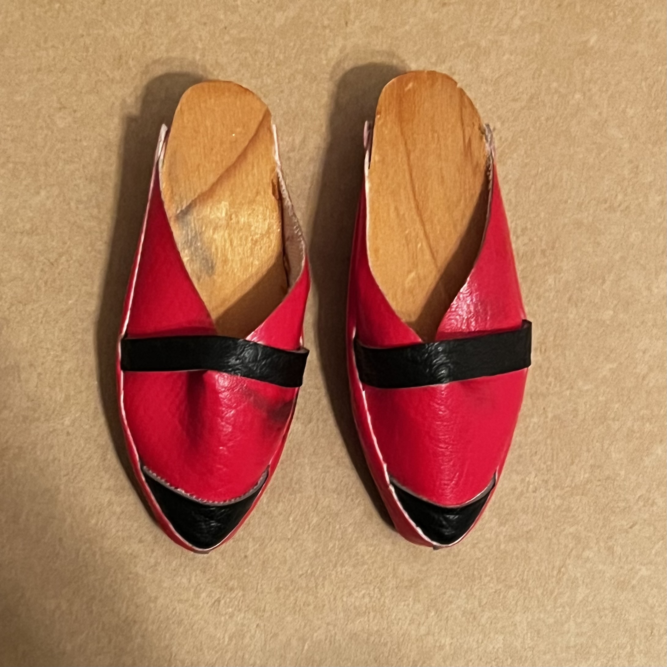 I got really excited when I spotted these red leather sabots hanging off a key chain. I hoped they would fit my shoeless RM from BTS, but alas they are too big.