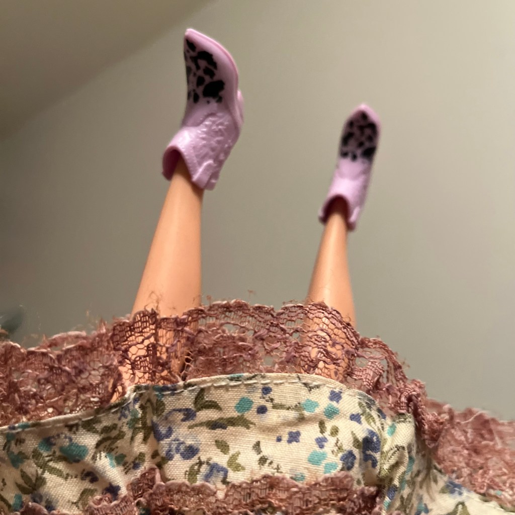 I did luck out finding these cowboy boots for new arrival Marie Osmond in a Barbie branded clothing set I saw at Dollarama.