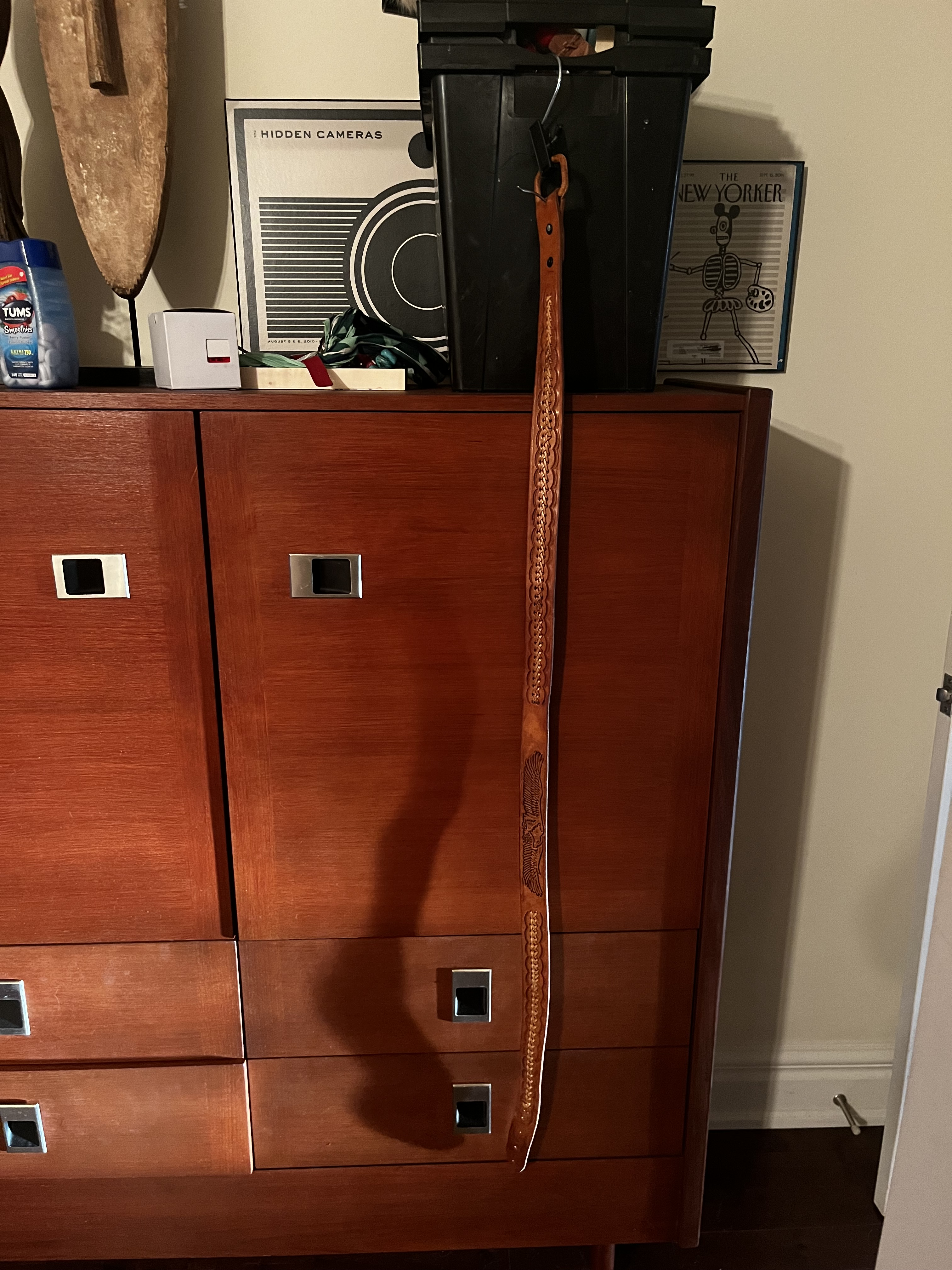 This woven and hand-tooled, made in Mexico belt won me over because it’s hard to thrift belts that fit me.