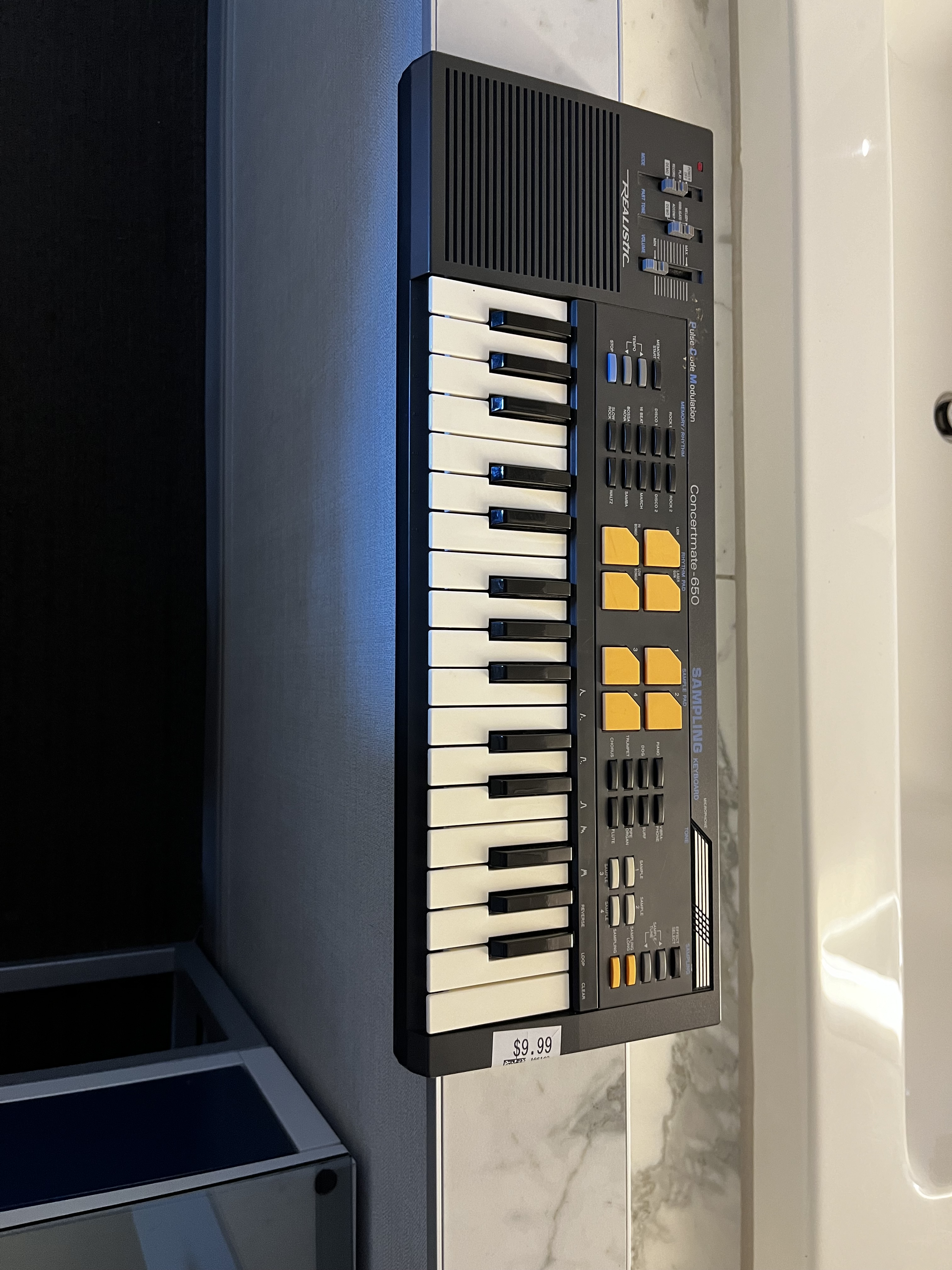 But the best find was this practically mint Realistic Concertmate 650 which was made by Casio and is basicall a rebranded Casio SK-5 sampling keyboard. It plays like a charm and we noodled around on it in the hotel room until it was time for sleep.