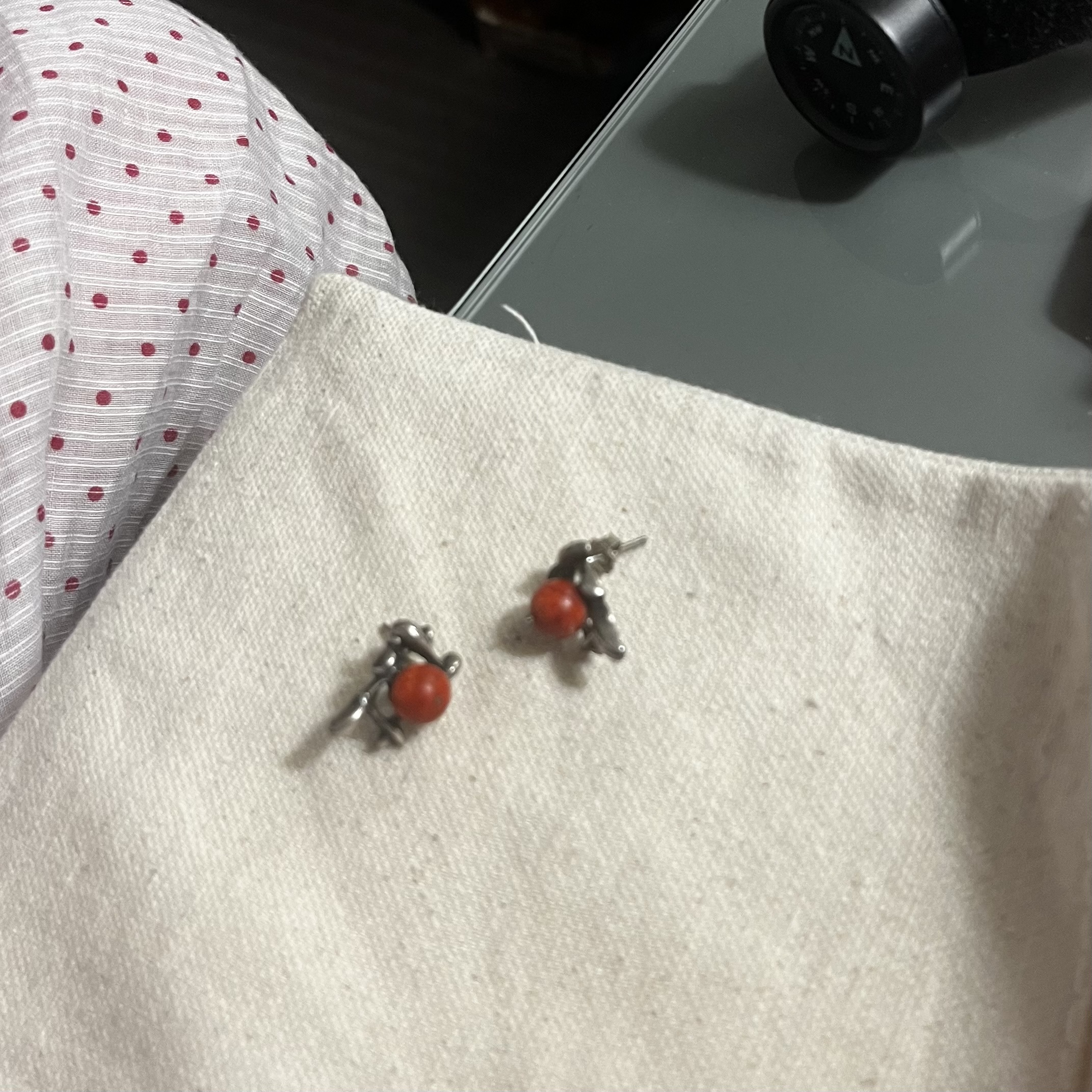 Almost forgot these Brutalist Freeform silver and coral earrings. I didn’t bring a loupe so I can’t completely make out the hallmarks but it looks maybe Polish?