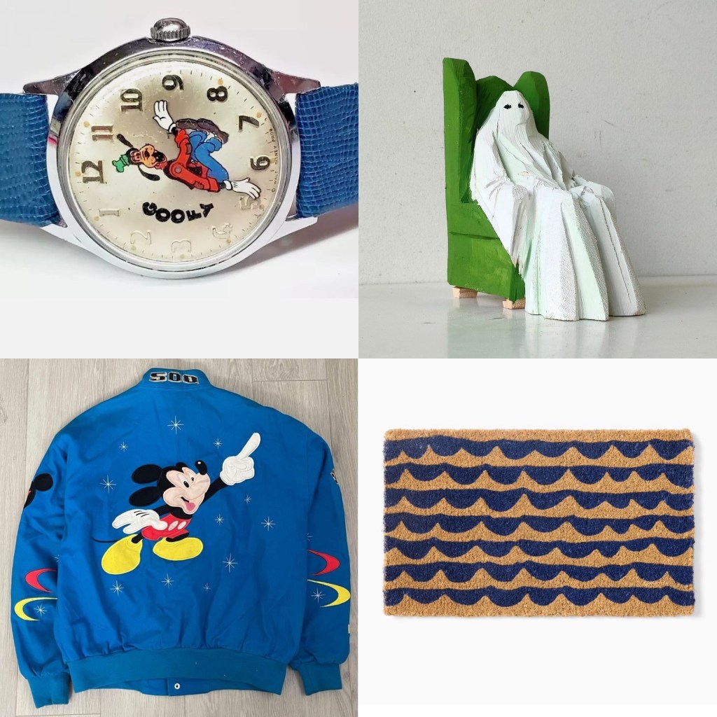 Here are a few more things that have popped up on my algorithms that I would like very much to buy but can’t because of space/money limitations or, in the case of the Mickey Mouse NASCAR jacket are no longer available. And I took a screenshot of the ghost sculpture but forgot to write down the name of the artist. Reverse Goofy watches turn up on eBay with some regularity but I can’t justify a new watch when I need to get my hearing aids fixed. And the Maimekko doormat is from West Elm so hopefully it will still be there when the next payday comes.