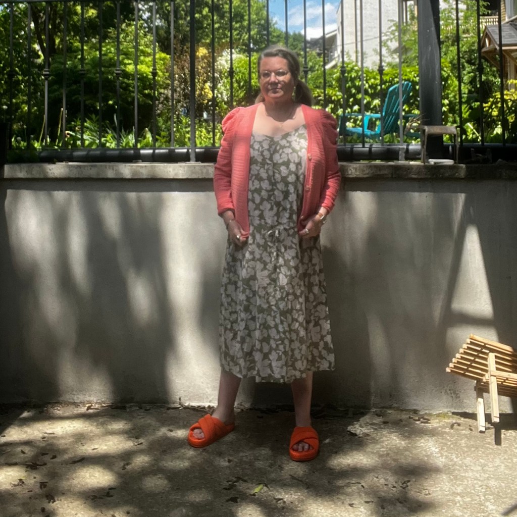 I’m trying out the NHS Shake & Soup protocol (look it up) and since I’m boycotting Loblaws this month I went to Walmart to get l meal replacement powder. I couldn’t help but check out the sale rack in the women’s section. I couldn’t help but buy a few spring things. For example, I just sold my red puffy sleeved H&M jacket at a recent yard sale because it was a medium and never fit me. And red is not my colour. Now I have an orange cardi that fits and fits the bill.