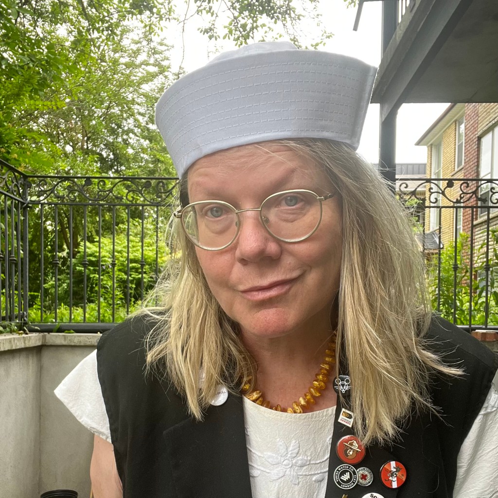 I picked up the sailor hat two weekends ago in Buffalo. I actually had a hat with me but it was all sweaty and I cannot bear feeling damp. This is a big conundrum for me: hats make me hot (what was it they used to say about winter hats? You lose most of your body heat through your head?). Next.