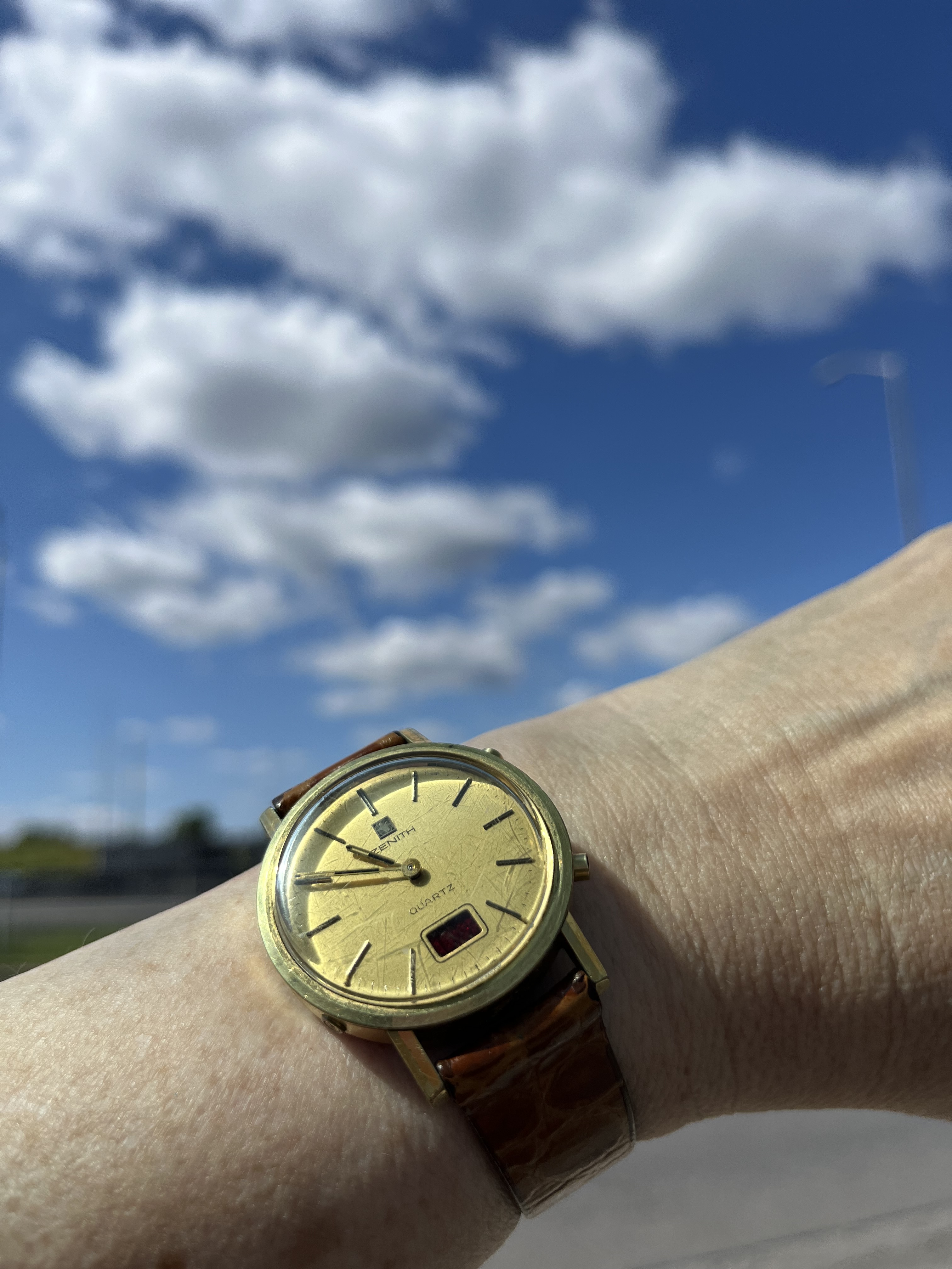 There’s no way I could possibly top finding a vintage Oris in a thrift shop, could I? While perusing Facebook Marketplace I saw a post for a lot of watches for $50. The pictures were blurry but one shape stood out. It was an analog/digital watch that looked suspiciously like the first ani-digi—the 1970s Zenith Time Command. I quickly made an offer and then travelled up to the Yorkdale Mall to complete the transaction.