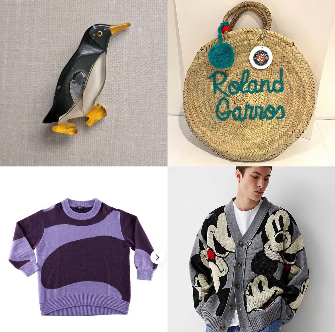 Here’s a wishlist that I almost checked off. I did contact the FB seller of this Penguin pin but they lived in another city and ultimately felt uncomfortable about mailing it. And I did get a Mickey Mouse cardigans, just not this exact model. No dice on the Roland Garros tote (my enthusiasm flagged as summer came to a close). 100 percent success on the purple pseudo Marimekko sweater from Giant Tiger. Just waiting for cooler weather to kick in so can wear it.