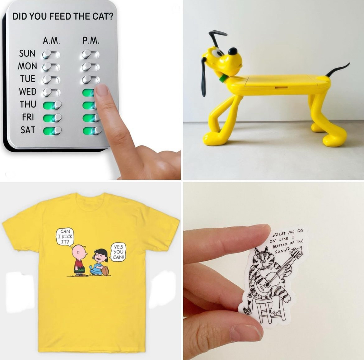 Every month I make a little list of cute things that I spot on the interwebs. They are things that I wish I could buy but for some reason (usually lack of money or availability), can’t. Or else they are things that I don’t really need (like the full sized plastic Pluto desk pictured above). I take screen grabs instead. And out of sheer laziness I forget to jot down the sources of these wonderful treasures (though I do remember that the Kilban cat sticker is from the Instagram account @sandw1tchshop.