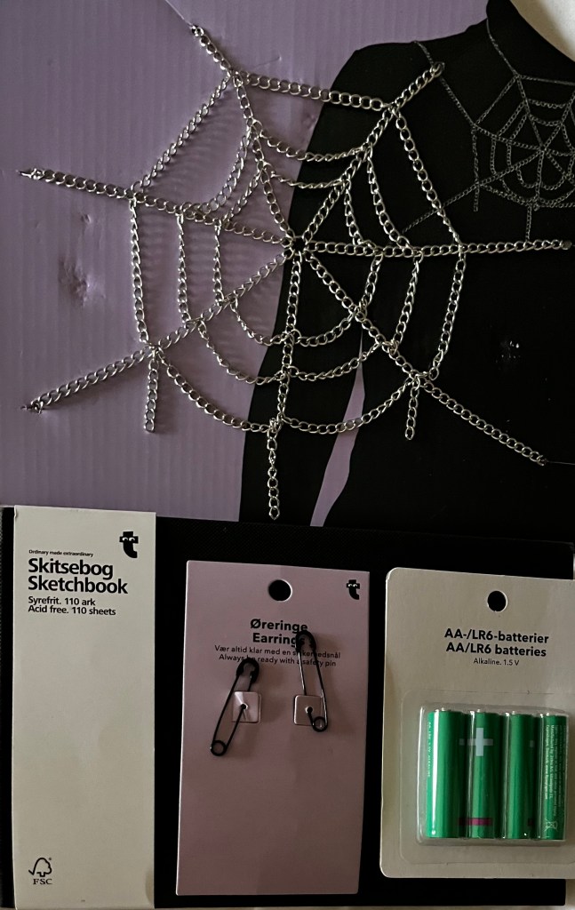 I was in Prague for a few days for work. They keep us on a pretty short leash on business trips but I did manage to sneak off for a couple of hours of shopping. On the first day I arrived about three hours before my colleagues so I nipped off to Flying Tiger Copenhagen where I purchased a Halloween-themed spider web body chain (see above), a sketchbook, a pair of safety pin earrings (the silver drop earrings I wore on the plane broke during the flight — I should reattach the pendants to the other pair of safety pin earrings I have lying around here somewhere) and some batteries for my emotional support fan.