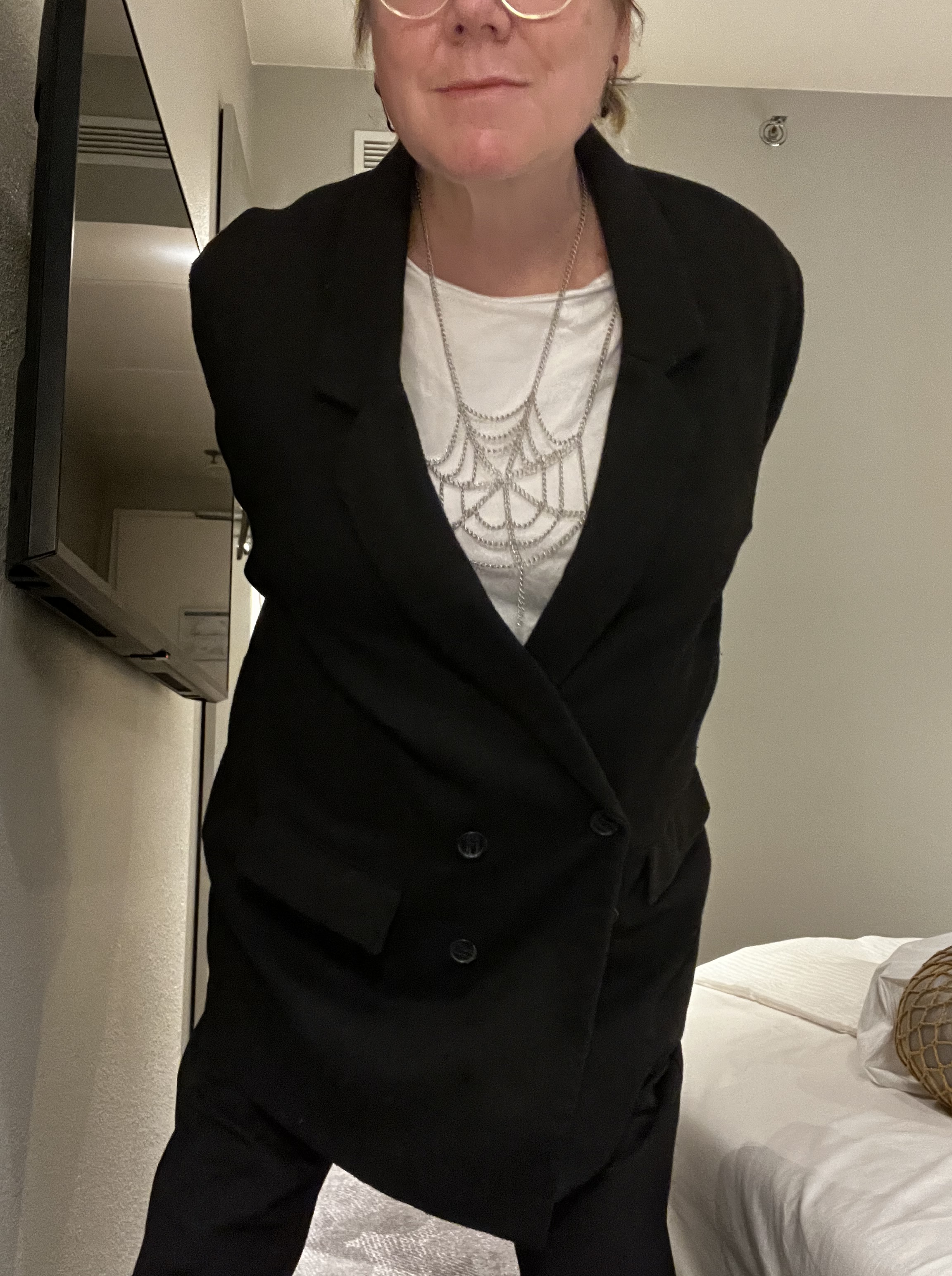 I also picked up this Keith Haring x Mickey Mouse Tote. Not sure why. I have too many bags as it is. Maybe it’s time to revisit my idea of turning watch-related swag bags into throw pillows. It could be my Christmas craft show thing this year. Anyway, here’s me in my new top, about to board a plane.