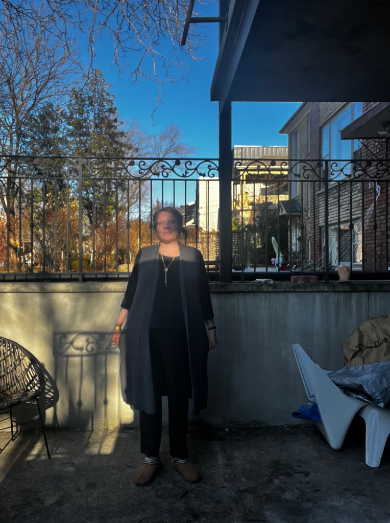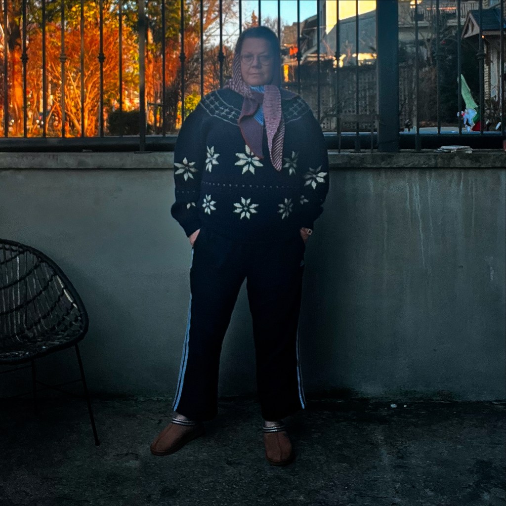 It’s just the top and pants that are Eileen Fischer in this pic — the sweater vest was lacking labels but was also thrifted.