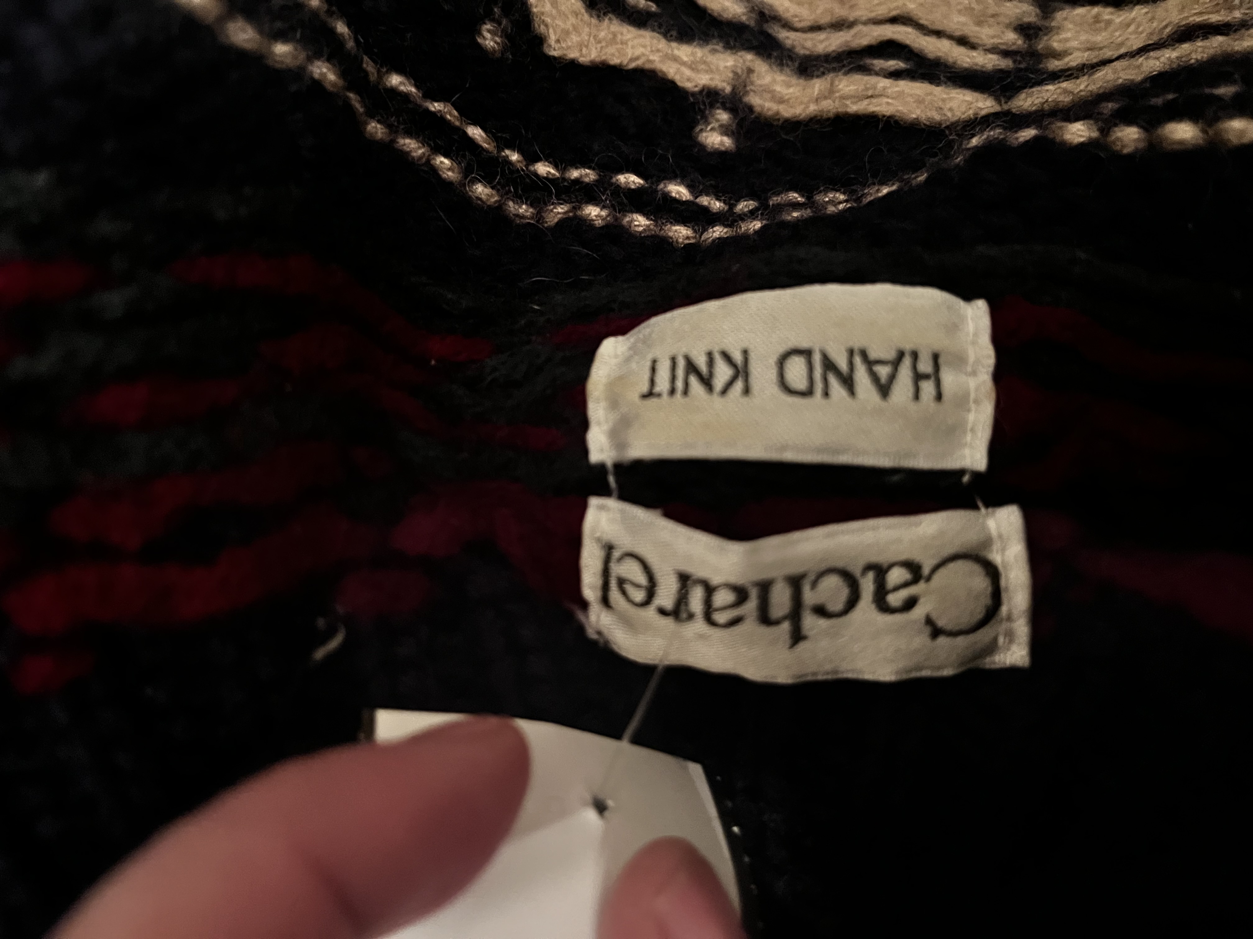 One thing that absolutely fits is this hand-knit Cacharel sweater. Cacharel doesn’t have the same cachet that it did in the 1970s and ’80s, but at one time it was a young, fresh and fun French label. This oversized wool pullover is so warm and cozy and suits my current cool grampa aesthetic.