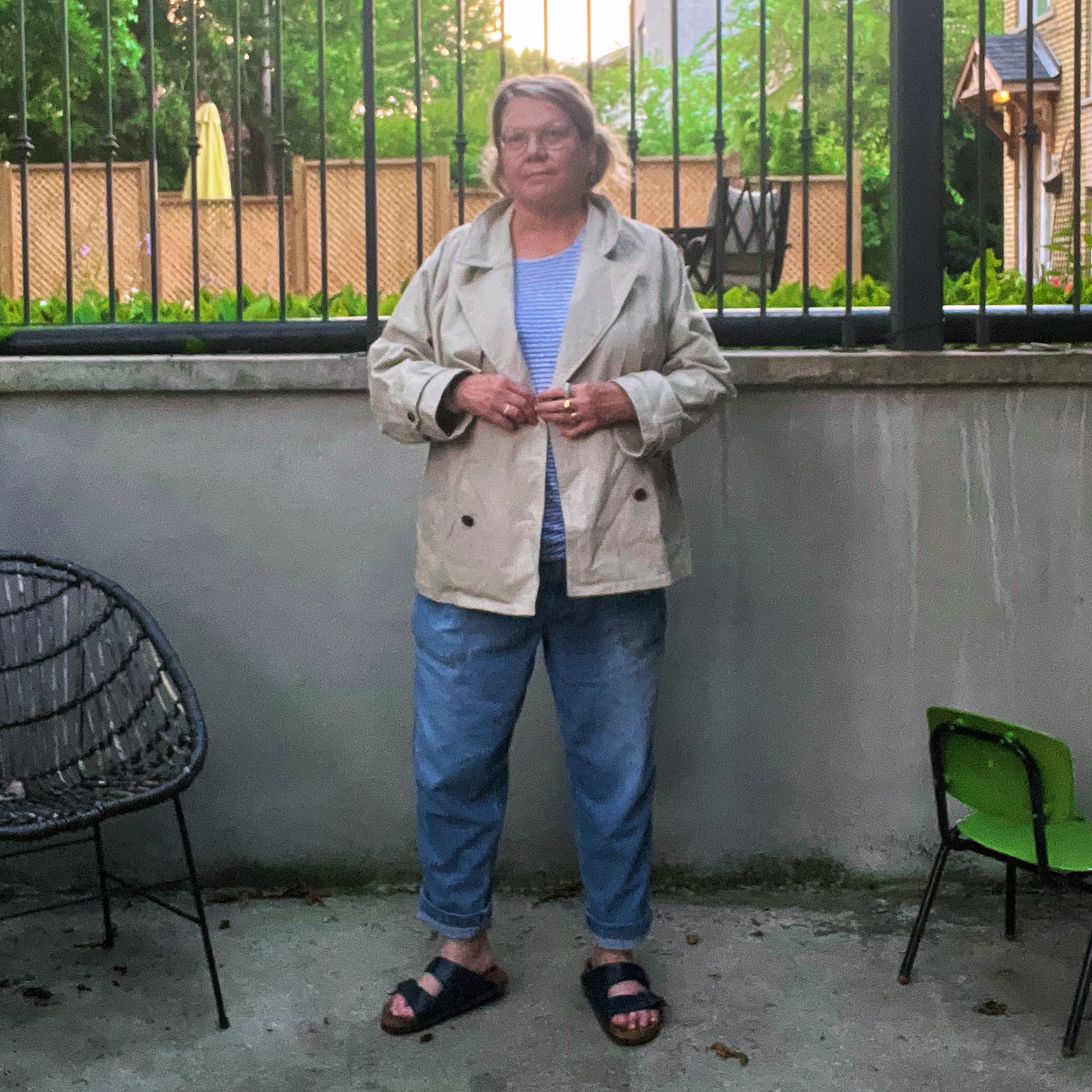 Finding glasses that I forgot about is just another sign that I have too much stuff. This so-called self awareness doesn’t stop me from buying more stuff. I went to KW this weekend to visit my mom. I wanted to go swimming but the bathing suit I keep at her place no longer fit. So I took the bus to the mall to get a new one. And I ended up getting this trench coat and jeans as well. Is that churning feeling in my stomach stress caused by my inability to save money or guilt for contributing to global warming by over consuming clothes?