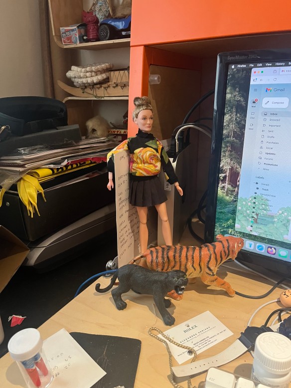 Louis came completely naked. He was in a baggie with a Disney doll. I stole that character’s shorts so Louis would be respectable. When I got home, however, I ditched the shirt pants and put him into some vintage velvet trousers and a fuzzy coat. It seemed much more rock and roll.