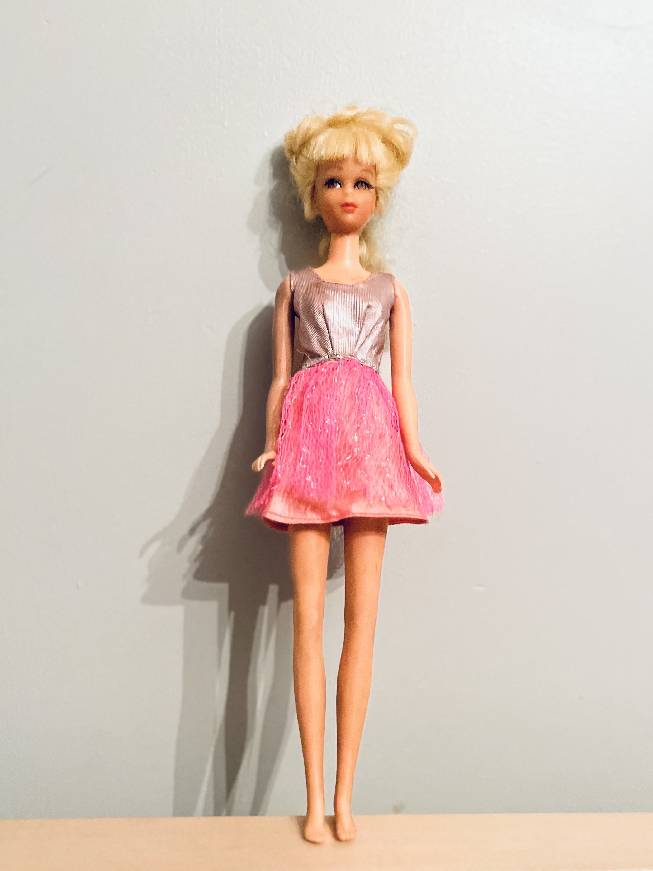A couple of extra notes. I also bought a baggie of doll clothes separate from Barbie and her friends. I found Francis’s original dress and Ken’s polyester shirt in that bag.