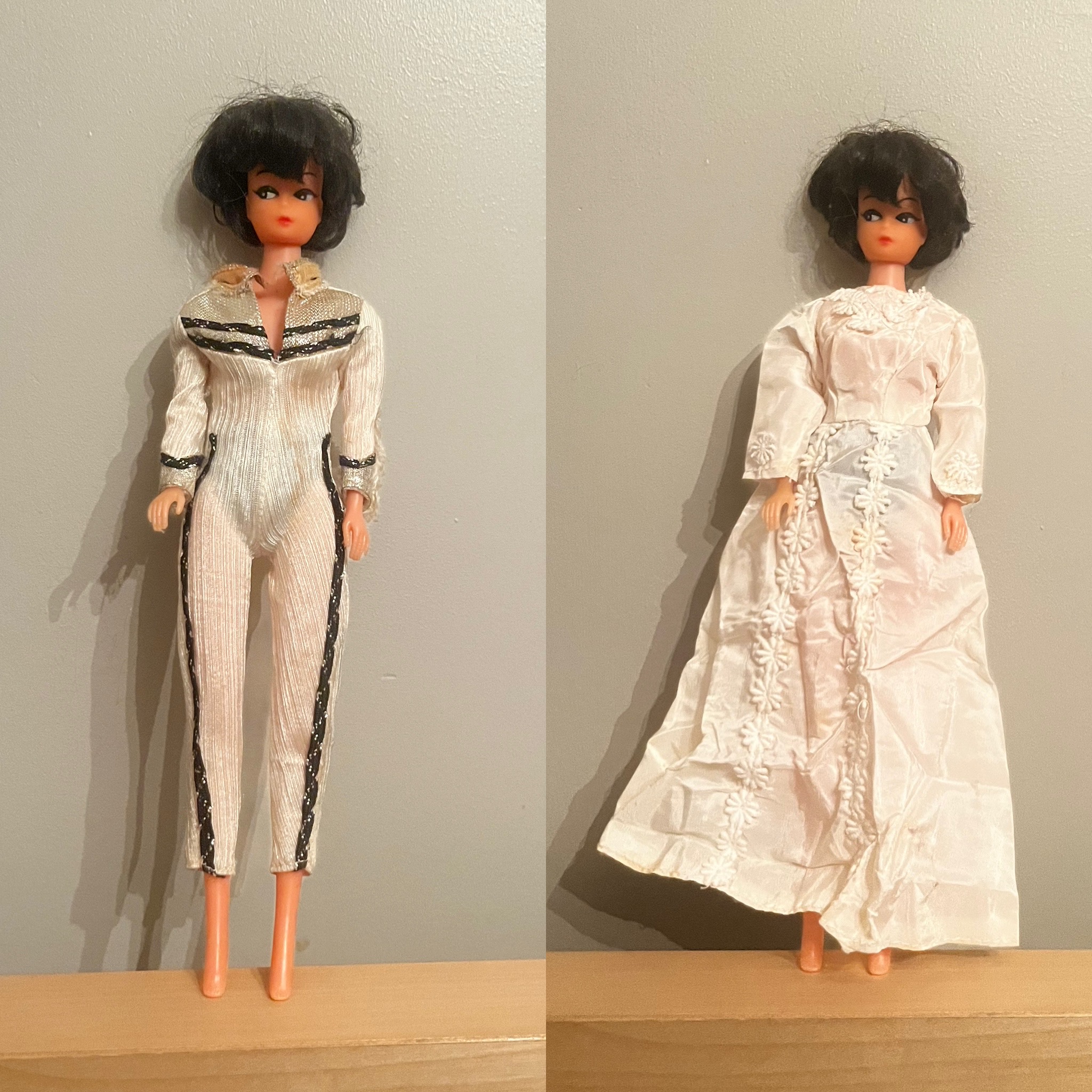 Here are some more restored ensembles. These were stained and the trimmings were coming off. Note to self when taking photos: white is see through.
