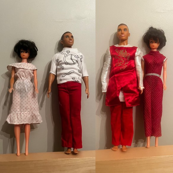 The closest thing to a challenge was this Southwestern Ken’s jump suit. The belt had frayed beyond repair and the buckle was missing but luckily I came across the same outfit with the belt intact but the rest of the garment in tatters. I also have the fringed jacket but it didn’t need fixing.