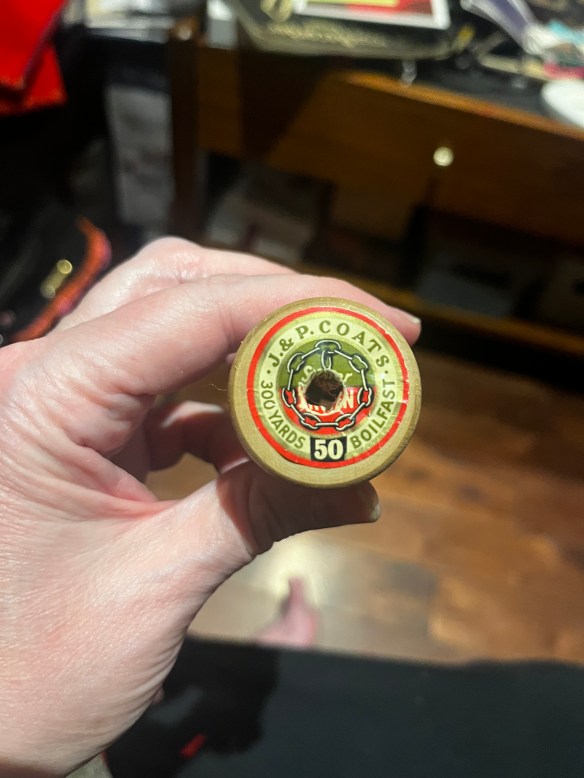 All of the tiny stitches required to repaint these clothes was done with vintage thread. Whenever I go to thrift shops I always stock up on vintage thread. It doesn’t break or get knotted like more modern threads, making it perfect for hand sewing.