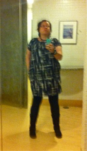 Here’s a look I felt pretty good about: A thrifted Simply Vera (Vera Wang for American department store Kohl’s) dress worn with my Anna Wintour necklaces. Dress, Simply Vera. Leggings, Old Navy. Biker… Continue reading