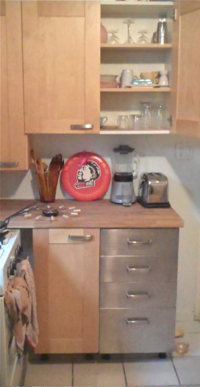 The wonderful Megan Richards has pretty much finished our kitchen. The cabinetry, donated by Carol and Jarle (and delivered by Martin) has been hung. The room has been rearranged. The wall colour, picked… Continue reading