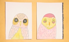 Went to City of Craft on Saturday. I got three arts by Toronto illustrator Greasychickenface. Two watercolour owls (pictured above) and, for Andrew, a bunch of bunnies (pictured below).