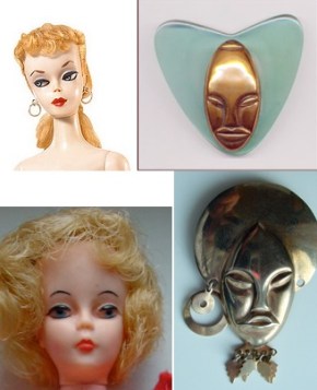 I found a tribal mask brooch (above, bottom right) at the Value Village in Kitchener. It reminded me of pieces made by a company called Elzac of Hollywood in the 1940s (above ,… Continue reading