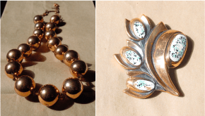 Once again I find my collection of copper jewellery growing. Here are two recent designer finds from the 1950s and ’60s: A Vendôme graduated ball choker and a Matisse enamelled tulip brooch. I… Continue reading