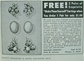 When perusing through old women’s magazines, you will often come across ads like these, promising the tools you need to make money at home by creating your own jewellery. This one is from… Continue reading