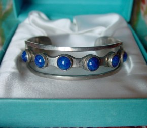 Modernist Silver Lapis Cuff Bracelet