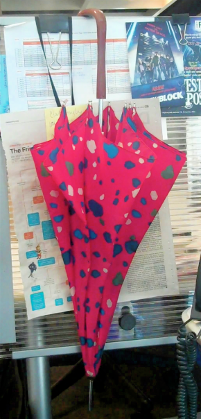This is my bestest brolly. I’m guessing it’s from the ’80s. What makes it wonderful is its print. One time I was at the Value Village. I put it down for a second… Continue reading
